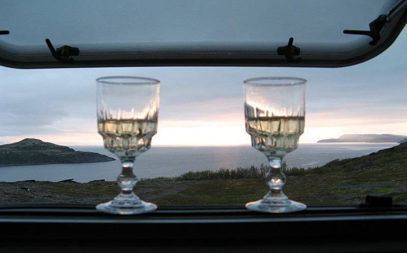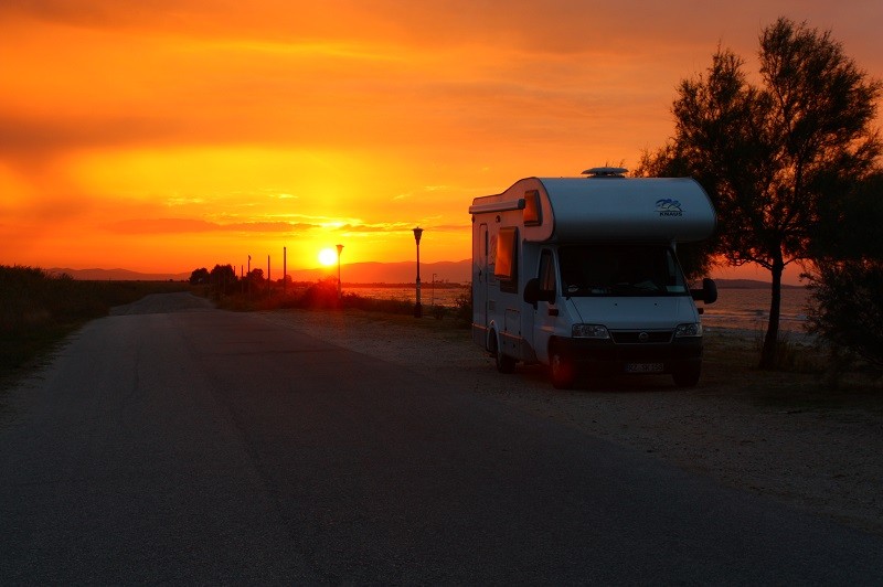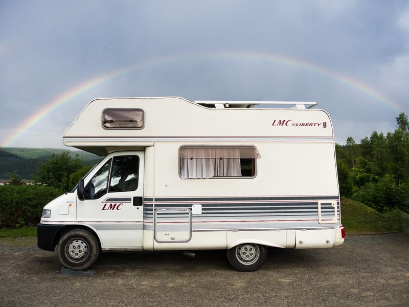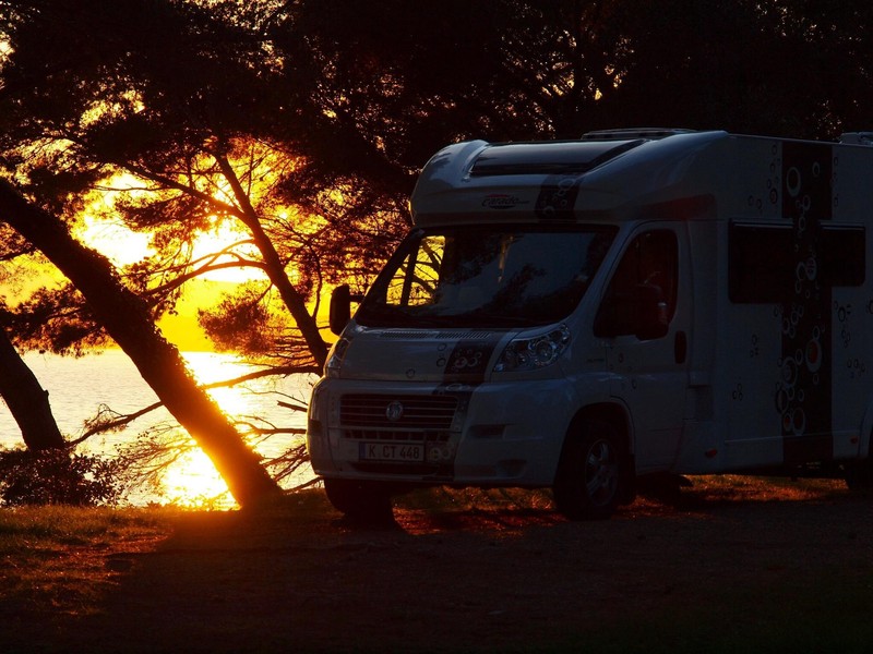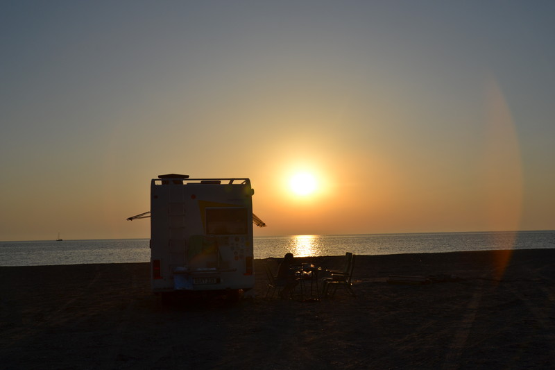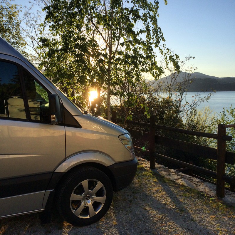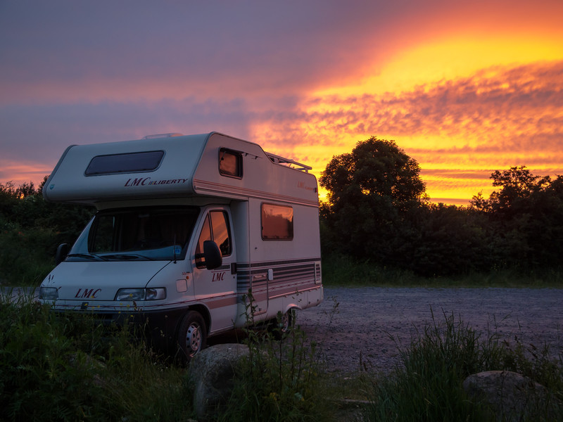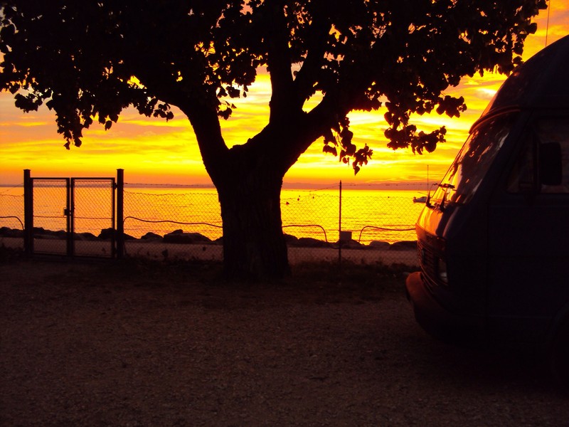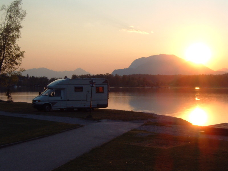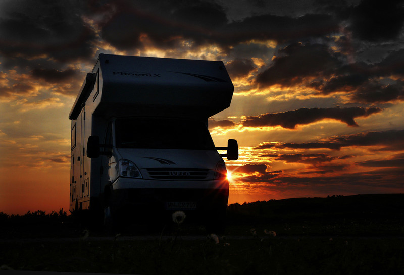 von seinem WoMo mit einem romantischen Hintergrund...