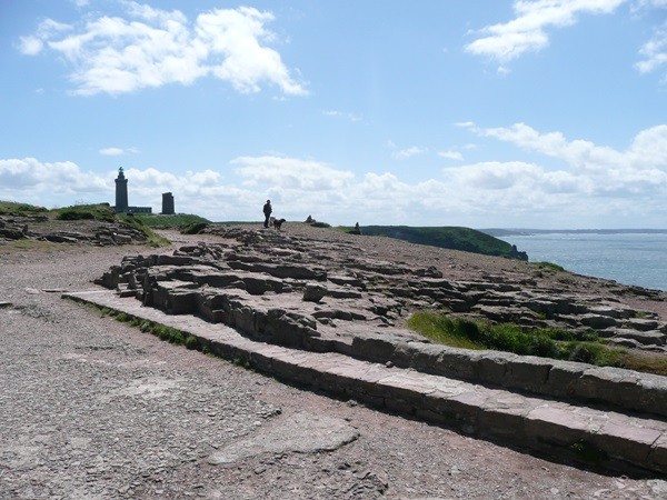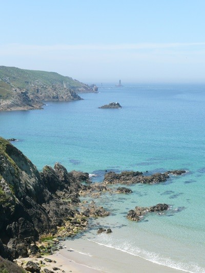 In einer Regenpause machen wir eine kleine Wanderung und sehen aus der Ferne den Pointe de Corsen, den westlichsten Zipfel Frankreichs, wo wir eigentlich wandern wollten.