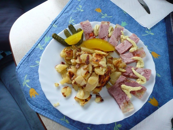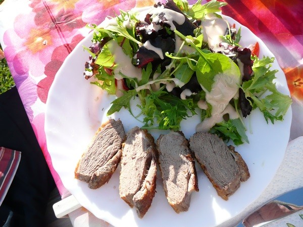 Danach geht es zurück. Abends gibt es Schweinefilet mit Pfeffersoße, Salat und Baguette und als Dessert einen tollen Sonnenuntergang. 3, 5b, 7b, 6b, 7c, 8d, 8j, 8m 9