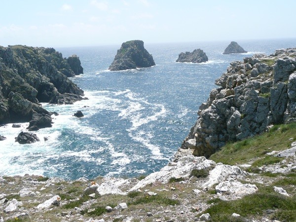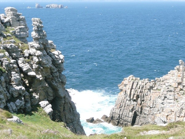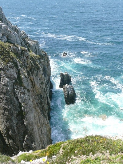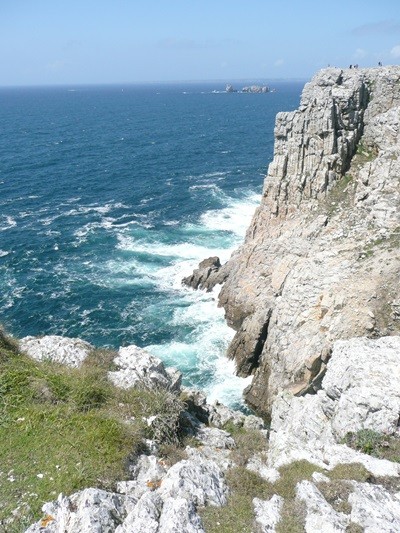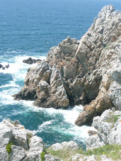Heute geht es in die andere Richtung auf dem Küstenwanderweg, natürlich wieder mit den herrlichsten Ausblicken, zum Pointe du Raz. Hier erleben wir zum ersten Mal einen regen Tourismus. Die steilen, zerklüfteten Klippen bieten beim starken Seegang ein eindrucksvolles Bild.