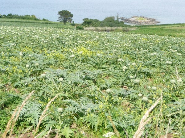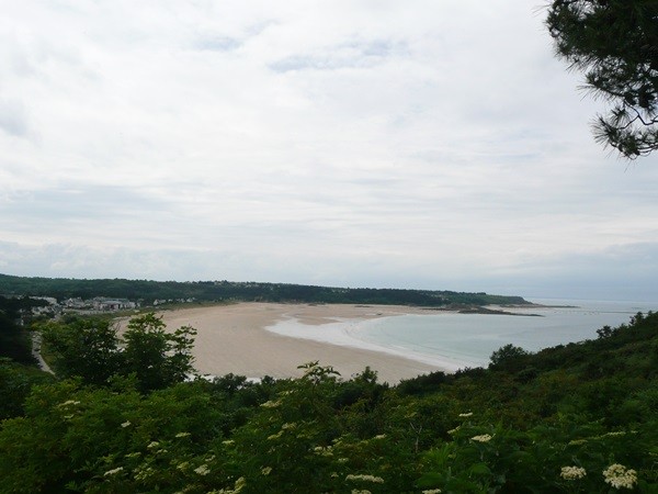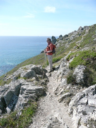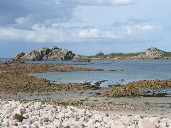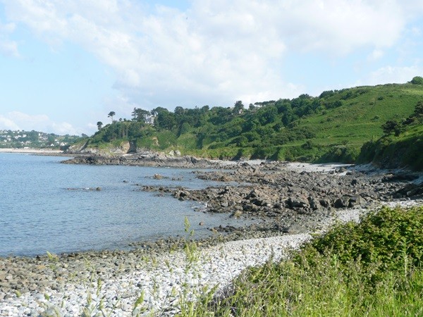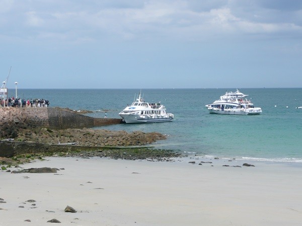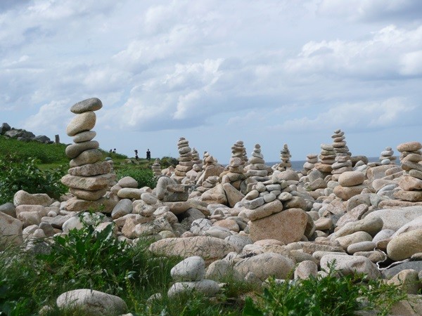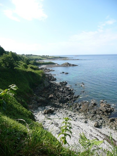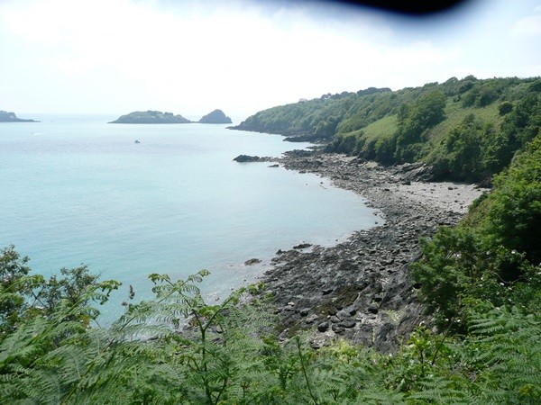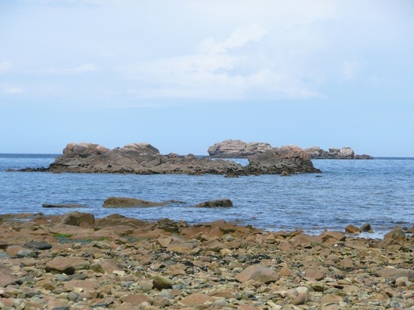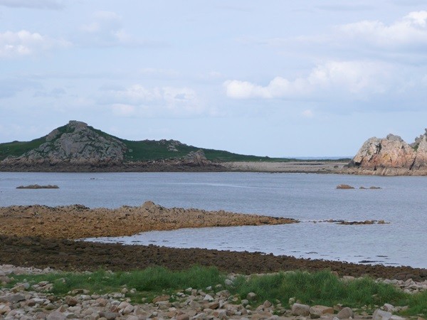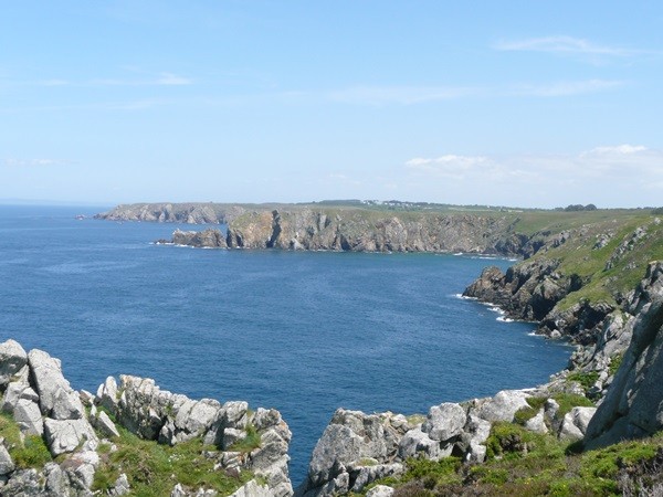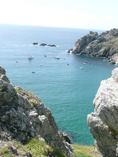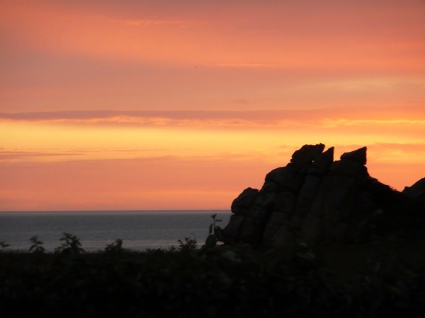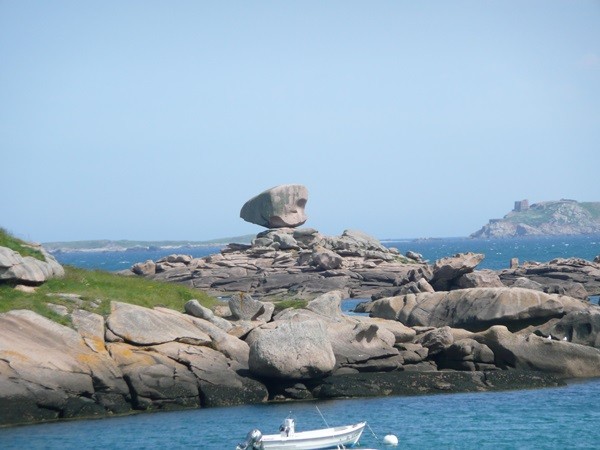 Nachdem es zuerst sehr bewölkt war, kam nach dem Frühstück die Sonne raus und wir machen uns auf den Weg und wandern zuerst zur Kirche, durch den Oberort und dann zum Küstenwanderweg. Hier haben wir wieder schöne Ausblicke auf die Küste, die vorgelagerten Inseln, nach Port Pican und zum Pointe du Chartry. Wir kommen durch Port Mer zum Pointe de Grouin, wo wir mit herrlicher Aussicht ein Picknick machen.