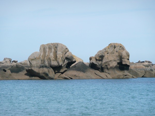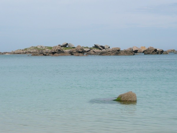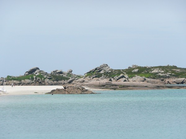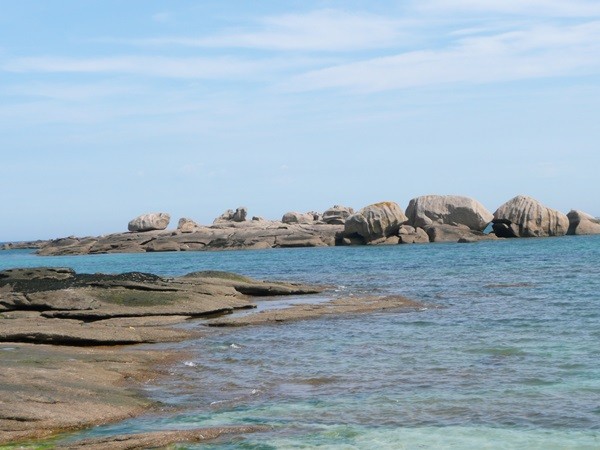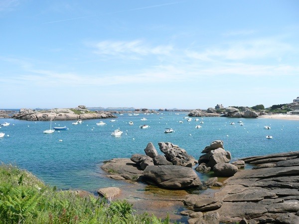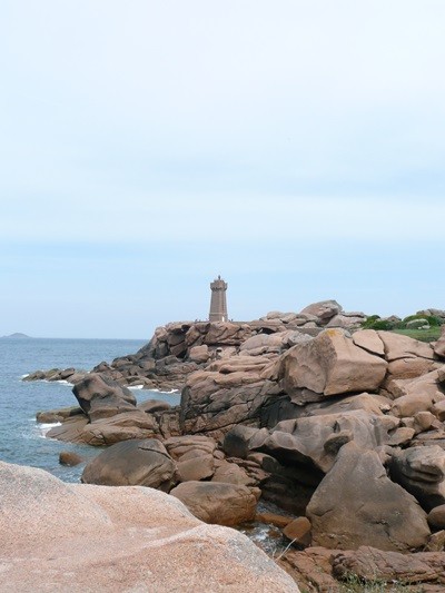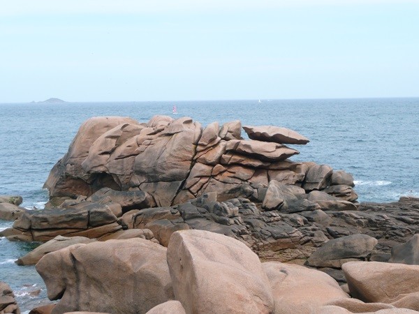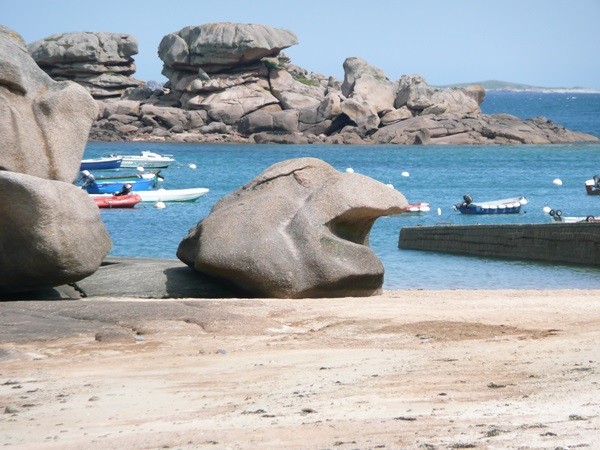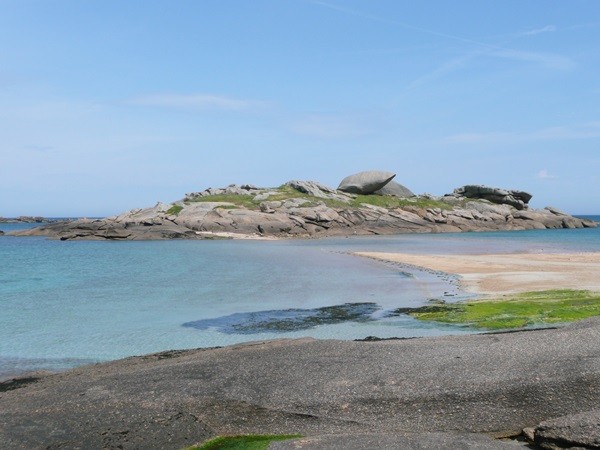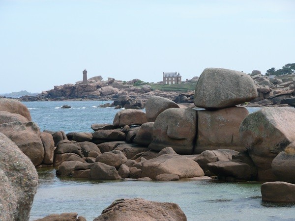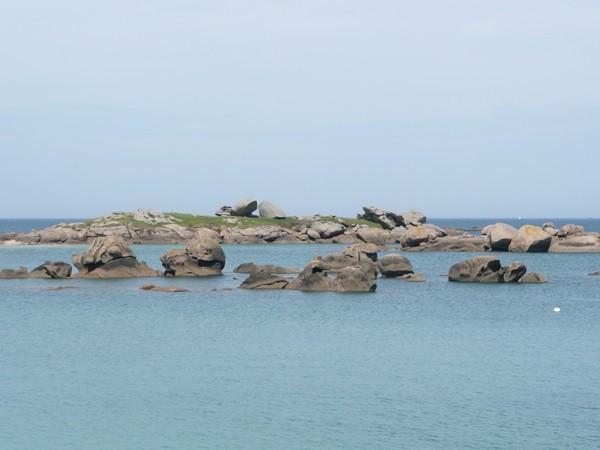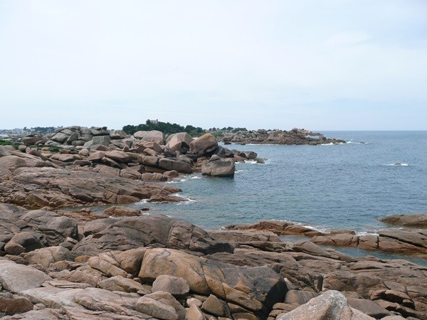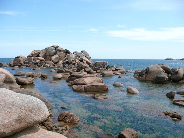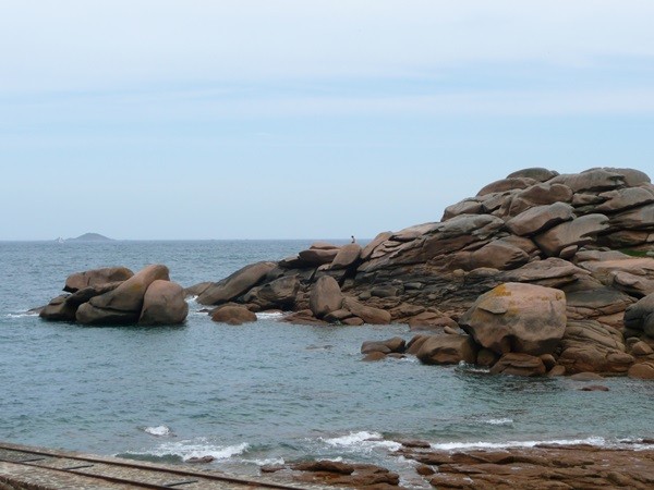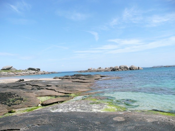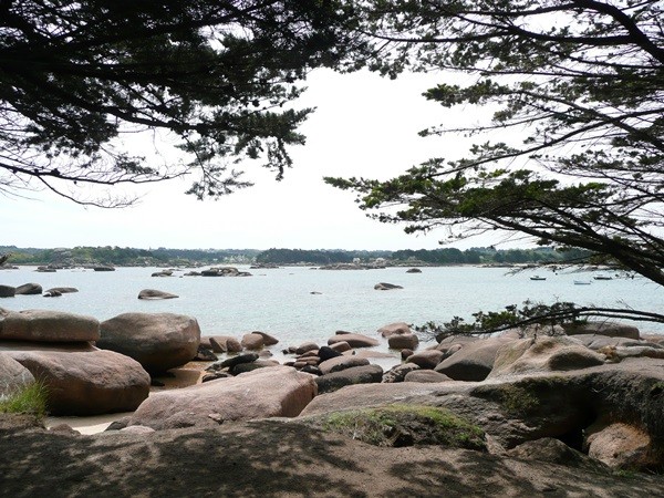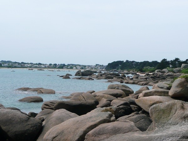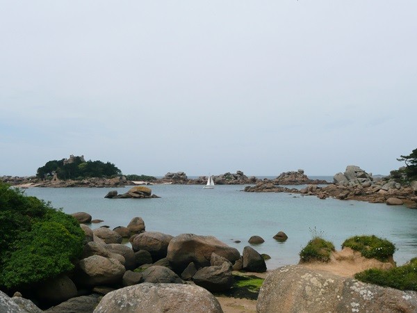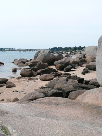 Hier können wir schon die ersten Eindrücke der Granitküste sammeln. Die Felsen blitzen im Sonnenschein auch schon an der einen oder anderen Stelle rosa auf.