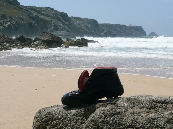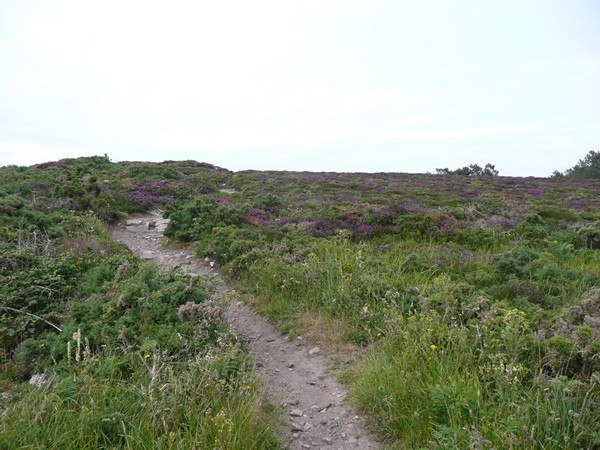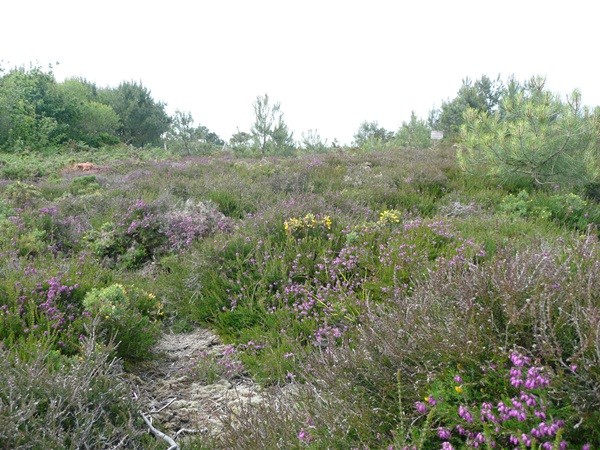 Dann geht es wieder den Berg hoch, auf einen fast alpin anmutenden Weg mit Blick auf eine von Fischern benutzte Buch, dann wieder durch Heidelandschaften zurück zum Pointe du Van.