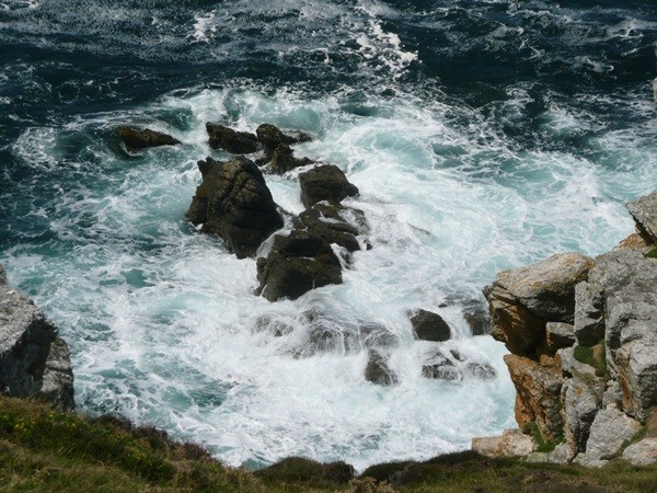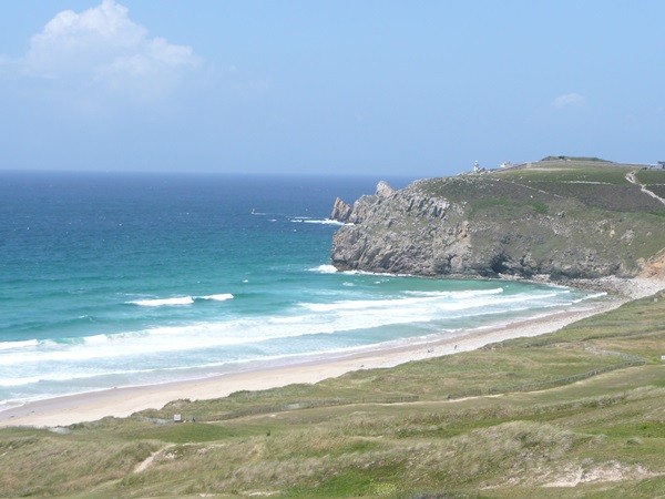 Es ist ein windiger Tag mit hohem Wellengang, ein schönes Schauspiel. Mit immer wieder neuen, schönen Blicken erreichen wir den Pointe de Pen Hir. Hier herrscht ein reger Publikumsverkehr, aber wir haben überall die Muße, den Wellen zuzuschauen und haben phantastische Ausblicke von den Klippen auf das Meer, das hier besonders wild an die Küste braust.