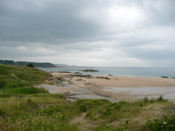 Dann geht es weiter über Dinard, Plubalay, Marignon, wo wir im „U“ einkaufen, zur Küstenstraße am Cap Fréhel, hier gibt es Kaffee und Kuchen, dann fahren wir die Küstenstraße weiter Richtung Plévenon, wo wir auf den CP Municipal in Pléherel Plage gehen. Das ist ein richtiger Glückstreffer. Der CP befindet sich direkt am Meer in den Dünen, teilweise gibt es Kiefernwälder, terrassenförmige Stellplätze, alles naturbelassen.