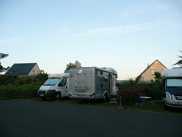 SP Cancale Aire Camping Car La Ville Balet Parzellierter Platz für ca. 50 Wohnmobile, teils auf Rasen, teils auf Schotter, Baumbestand, im unteren Bereich für Wohnmobile bis ca. 6 m, im oberen Bereich für größere Mobile. 6,00 Euro/24 Stunden, bei der Abfahrt am Automaten zu zahlen, Wasser und Strom (wenn es funktioniert) an der V+E-Säule (jeweils 100 Liter oder Strom für 1 Stunde für 3,20 Euro)