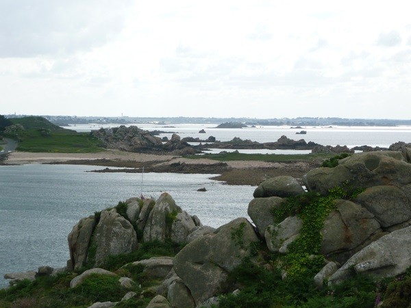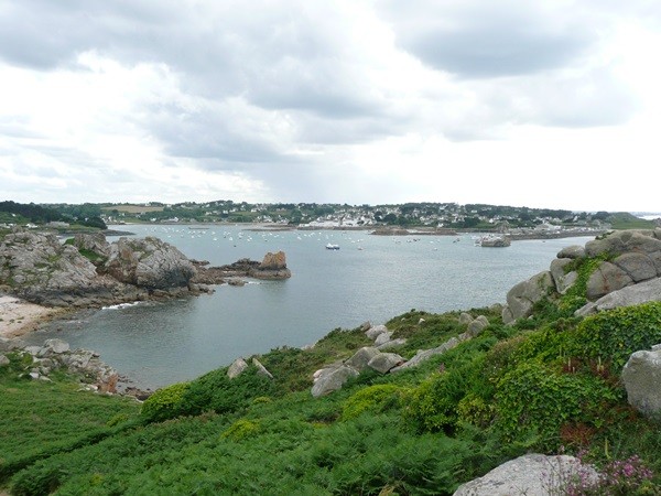 Beim Aufwachen hatten wir strahlenden Sonnenschein, aber beim Herrichten des (späten) Frühstücks zieht es sich immer mehr zu. Und dann kommt der Regen, stundenlang. Zeit zum Lesen und um die ersten Bilder zu sortieren. Am Nachmittag lässt sich die Sonne wieder blicken und wir machen uns auf den Weg, auch den Weg in die andere Richtung zu erkunden. Auf der kleinen Küstenstraße gehen wir bis Plougasnou, dort nehmen wir den Zöllnerpfad zurück.