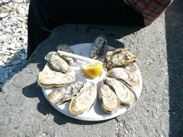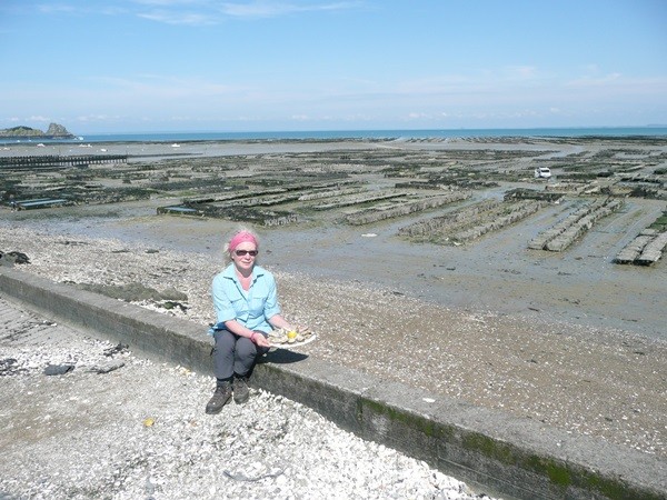 Im Hafen von Cancale gibt es zur Belohnung Austern auf der Treppe (danke Lena für den Tipp) mit Blick zum MSM.