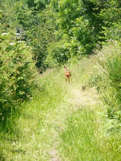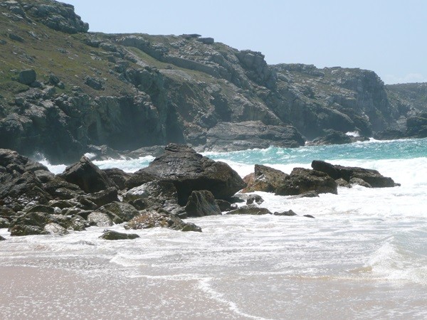 Dieser Abschnitt des Weges ist sehr ungepflegt und nicht präpariert. Teilweise ist er so zugewachsen, dass das Gras und die Farne fast so groß sind wie ich. Die Ausblicke aufs Meer sind wieder schön, es gibt auch spektakuläre Buchten, aber schön ist der Weg nicht. Wir kämpfen uns ganz schön durch das Gestrüpp. Wenn hier nicht bald etwas gemacht wird, wird man diesen Abschnitt im nächsten Jahr nicht mehr gehen können.