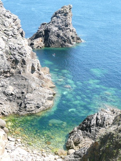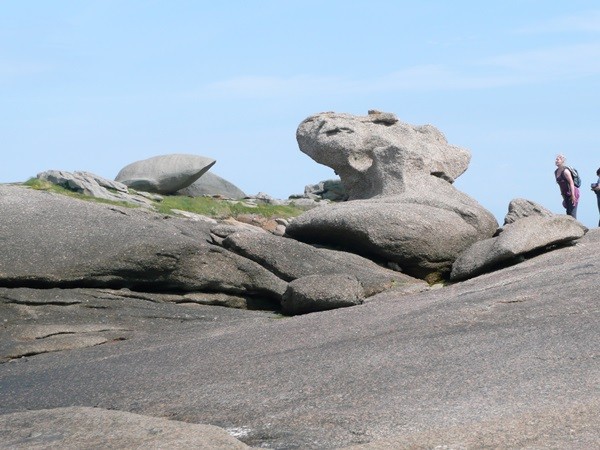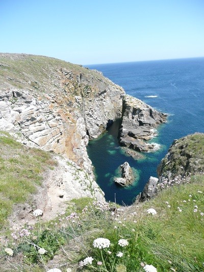 Dieser kleine, geschützte Hafen wird von den Fischern genutzt. Weiter geht es durch Heideflächen und zerklüftete Küstenbereiche bis zum „Teufelsloch“ und erreichen den Pinte de Feunteun Aod.