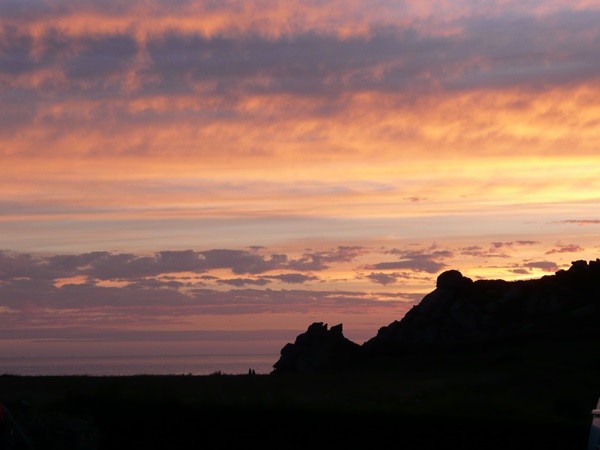 Abends wird gegrillt. Nach dem Essen gehen wir noch einmal zu den Klippen, aber der ganz tolle erhoffte Sonnenuntergang bleibt leider aus.