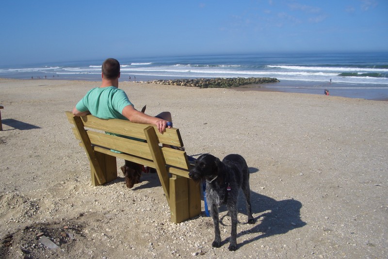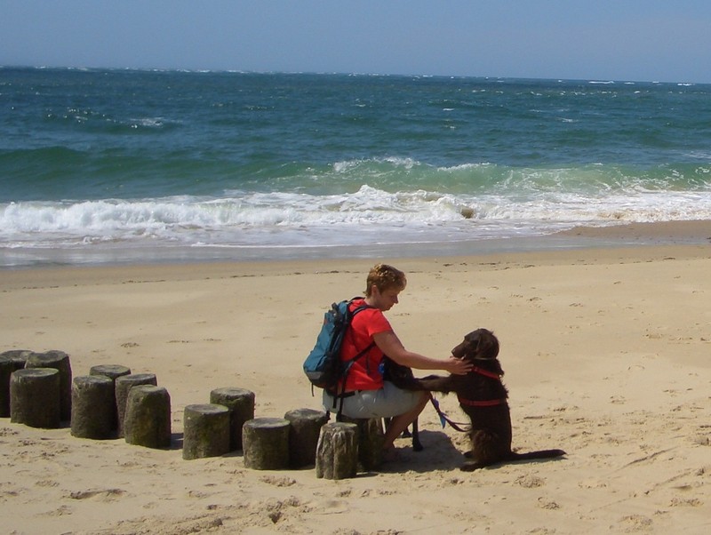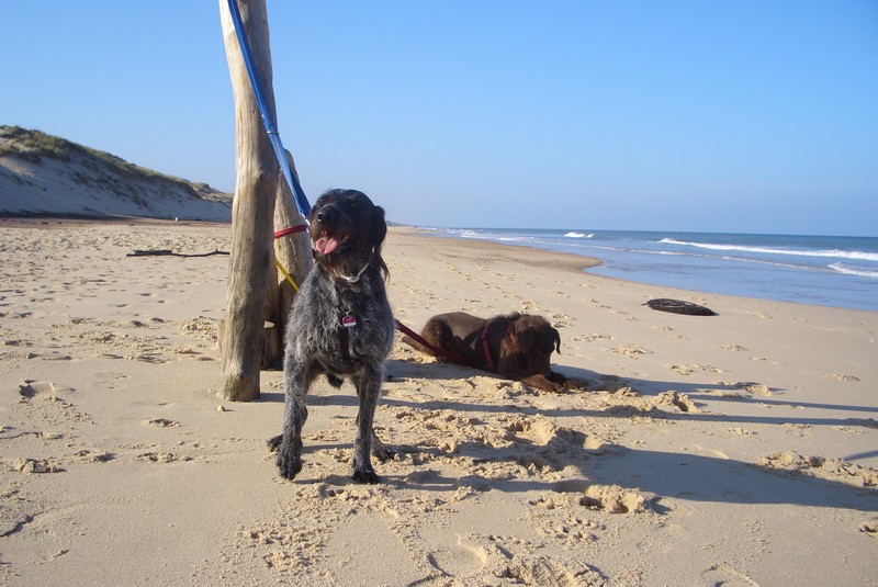 Heute haben wir die beiden mal ausschlafen lassen. Irgendwann hat Herrchen sich dann aus seinem Schlafplatz bequemt und wir sind dann auch gleich eine Runde an den Strand.