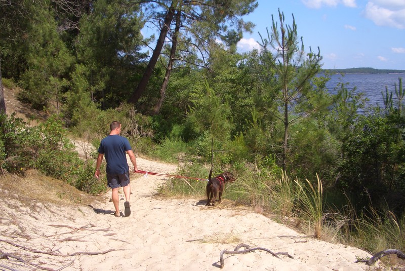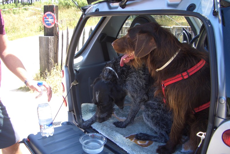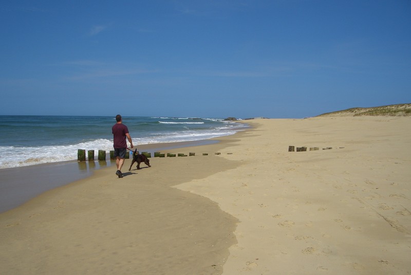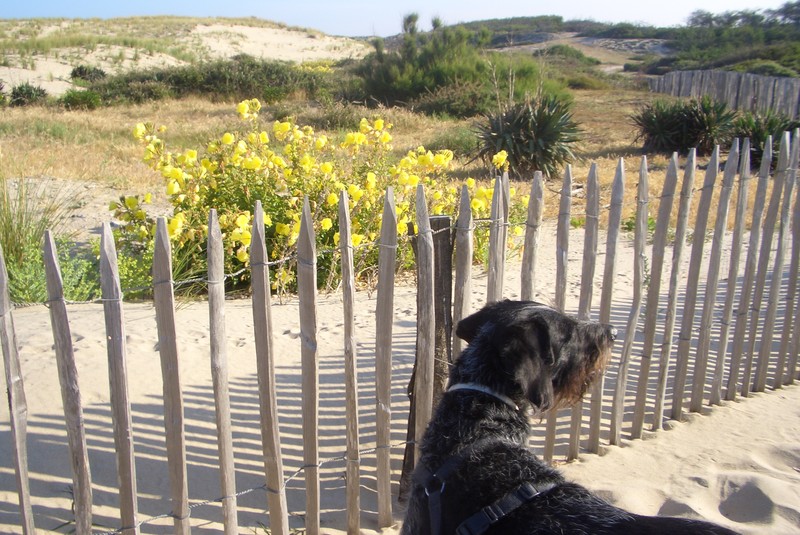 Der Spaziergang war klasse, so kann jeder Tag beginnen. Bis zum Nachmittag haben wir es uns im Schatten gemütlich gemacht. Danach ging es im Gassiauto die Umgebung erkunden. Zuerst in den nächsten Ort (Montalivet) den Menschen beim Surfen zugucken. Es gibt spannenderes für Hunde.