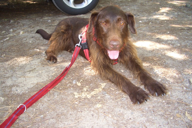 Danny ist ein richtiger Rüde, denkt er auf jeden Fall (eigentlich ist er kastriert). Ursprünglich aus Ungarn, jetzt lebt er seit 1,5 Jahren im Sauerland. 3,5 Jahre alt, schokobraune unbekannte Rasse mit riesigen Tatzen.