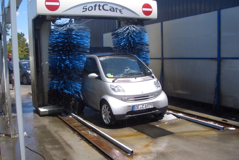 Unser Gassiauto darf bei der Hitze auf dem Rückweg noch unter die Dusche. Besser der als ich.