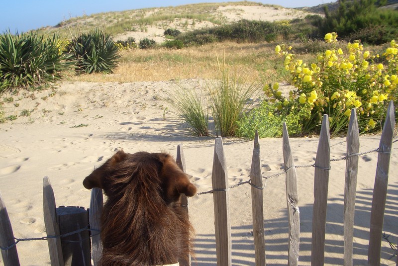Nach dem üblichen Gewusel der beiden ging es mit dem Smart los. Nach einer ruckeligen Fahrt, bei der sich meine Kumpeline ziemlich breit gemacht hat im Kofferraum, sind wir an einem anderen Sandhaufen ausgestiegen. Meine Menschen nannten den Ort „Cap Ferret“.