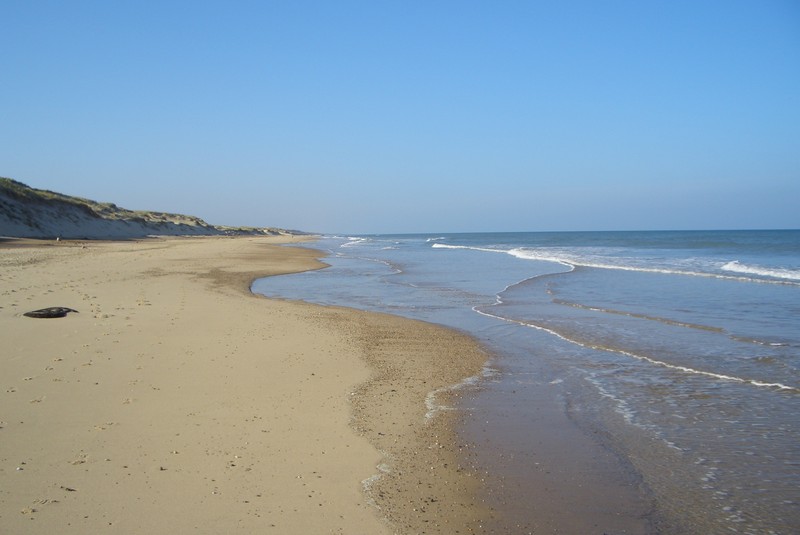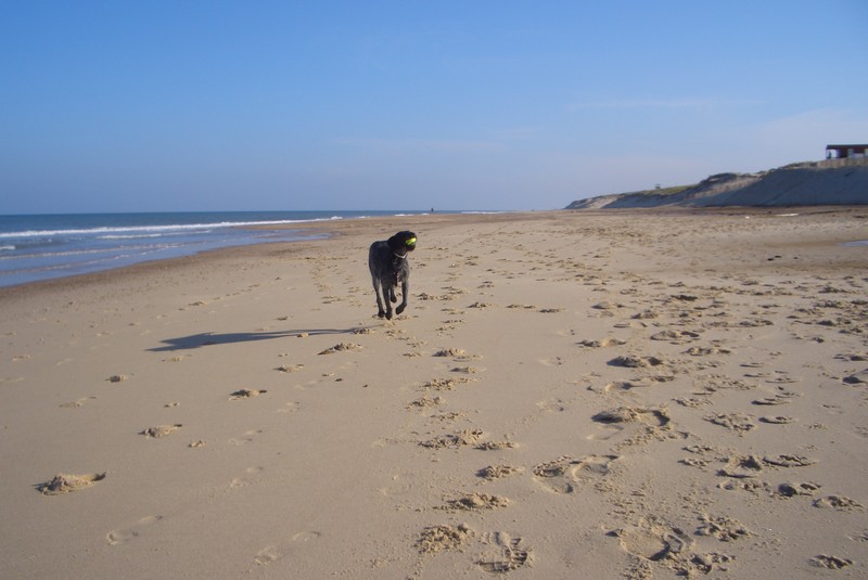 Am nächsten Morgen wollte Claudia unbedingt ans Meer. Mir ist es ja egal wo ich meine Gassirunde drehe. Also gehen wir mit ihr ans Meer. Wir sind über einen großen Sandhaufen gelaufen auf dem es wunderbar nach Kaninchen gerochen hat. Leider waren zwischen ihnen und mir ein blöder Bretterzaun.