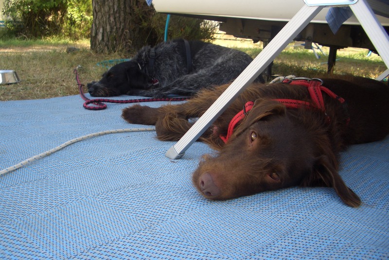 Ansonsten war der Abend unspektakulär. Im Schatten vom Anhänger haben wir alle ein wenig gechillt. Es war bullenwarm. In der Nacht gab es ein Gewitter, das lässt mich ja völlig kalt. Bruna hat gezittert, Gewitter mag die gar nicht.
