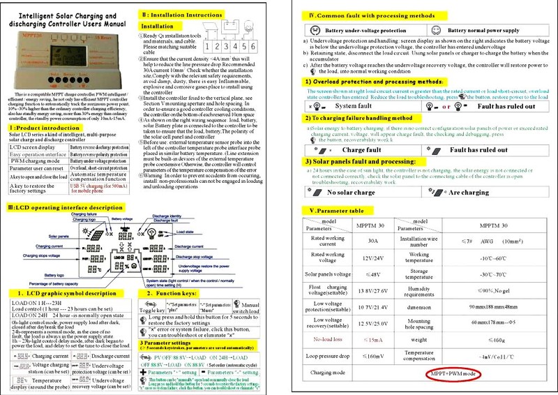 Solarregler: 30A 12V/24V MPPT Solar Laderegler