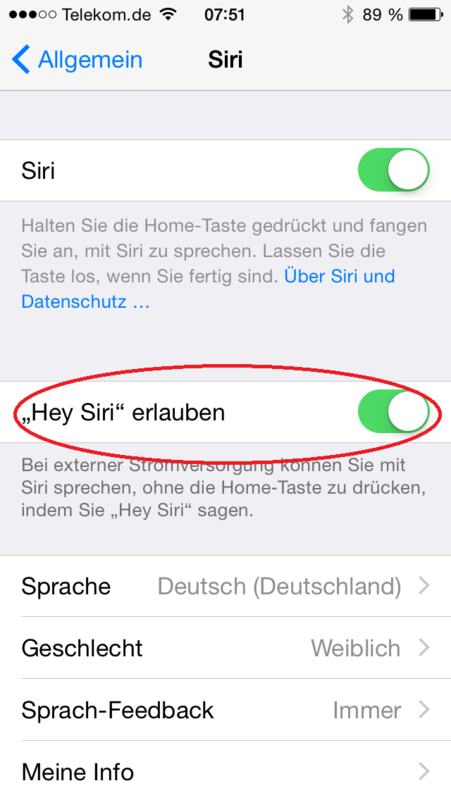 Danke Peter! warum das bei vollem Akku auch nur mit externer Stromversorgung geht, erschliesst sich mir nicht ganz. Beim ersten Test gleich durchgefallen, Siri kennt meine Frau nicht. :D Jungs üben, üben, üben oder die Stimme auf Männlich umstellen falls ihr keine Frauenversteher seit :mrgreen: