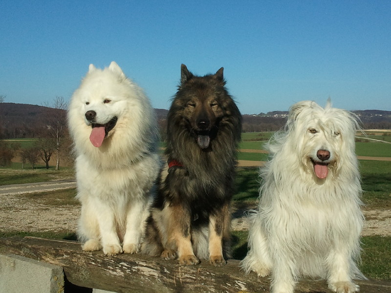 ![]() Welch edele Hundeschar / Trio. Ein tolles Bild :) Hallo Christel, das mit dem Giftzwerg ist echt gut, die Kleinen sind aber meistens giftiger wie die Großen. Er ist nur gegen intakte Rüden giftig :D und natürlich gegen alle Arten hündischer Eindringlinge.