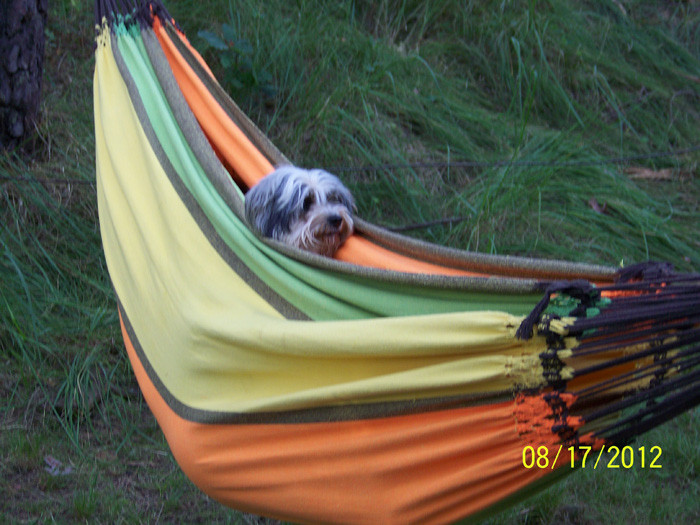 Hier sitz Willy in der neu erworbenen Hängematte.