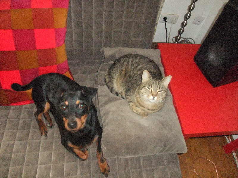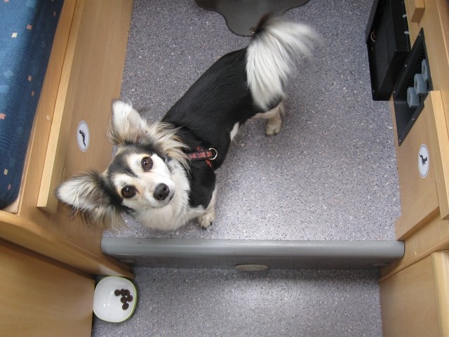 ja, das Körbchen ist immer auf dem Beifahrersitz festgeschnallt. Ich fahre ja immer alleine, deswegen hat Nelly die Funktion des Beifahrers übernommen. Sie muss nur noch lernen, die Karten zu lesen und mir Kaffee einzugießen. :D Zum Schlafen habe ich für Nelly noch ein Schaumstoffkörbchen mit Deckchen dabei. Das stelle ich im WoMo auf den Boden. :sleeping: Deine beiden Lieblinge sehen auch süß aus und scheinen sich gut zu vertragen. Nehmt ihr beide mit auf Reisen? :roll: flanelly Nein, unser Hund bettelt nicht:
