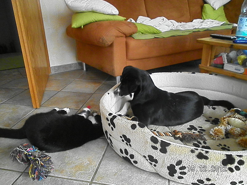 Auf meinem i-Pad fehlt ein kleines Stück vom rechten Ohr. :? @Molle1 Was für ein lieber Kerl Euer Bandit, wie alt ist er? @Werner Super der neue Wintermantel, Willy trägt ihn sehr selbstbewusst. ;D Unser Bandit ist ein Labi-Schäfi-Colli-Mix und ist jetzt gerade 4,5 Monate alt. Er macht uns und unseren 2 Kater sehr viel Spaß :D ![]() Die beiden passen ja farblich wirklich wie die Faust aufs Auge zusammen. :lol: Hallo Molle1 Dann ist euer Bandit ja gleich alt wie unser Flynn. Das wäre Fest auf der Hundewiese :razz: Die beiden sind ja hübsch! Sie passen ja gut zueinander. Viel Spass mit den Beiden. Hallo Waldtroll, tolles Jäckchen hat Deine Frau da für Euren Liebling gestrickt. Sitzt ja wie angegossen. Die hätte meine Luise auch gerne :runningdog: Hallo Werner, schön zu sehen, dass es Willy so gut geht und der Pulli steht ihm ausgezeichnet. Bandit und Flynn sind ja auch zum Knuddeln. Ich wünsche Euch allen viel Freude mit Euren Fellbündeln. Archimedes hat Spass >>>>juchu Schneeeeeeee :D ![]() >>>>>her mit der Maus ![]() ![]() Ach Conny, klasse deine Bilder vom Wischmopp. :lol: Das letzte find ich stark. Hoffentlich seh ich den bald mal wieder. So, hier ein Bild von meinen zwei Fellnasen. Der Terrier ist an die sieben Jahre und hat letztes Jahr sein Camperleben im T3 begonnen. Die großer "Kleine" ist zur Zeit 4 Monate und wird mal ein Berner Sennenhund. Sie wird dieses Jahr Neuland betreten. Mal schauen, wie die zwei mit Ihrem neues Zweitheim klarkommen :lach: , Simone Ein Bild von unserem großen Schmusetier mit seinem kleinen schmustier. klein paula schulterhöhe 72cm, 48 kg, 9 monate. lg olly