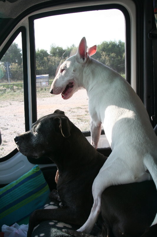 Was für eine Rasse ist das? Von einem Hund der nicht haart träume ich ja auch, nach ü 20 Jahren Retriever Mixe die immer haaren :cry: :oops: sieht nach einem Pudel aus... Richtig, es ist ein Grosspudel, auch Königspudel genannt. Flynn ist jetzt unser 2. Grosspudel. Sein Kumpel Jascho ist bereits 11 Jahre alt und weitgereister Womo-Veteran :D , unser ständiger Begleiter in jeder Situation. Pudel haaren nicht, das ist äusserst praktisch. Wenn ihr Fell aber etwas länger ist (das wächst ja ständig nach), wird auch viel Dreck angeschleppt. Das Fell ist "fluffig" und alles bleibt drin hängen...Meine Pudel dürfen Hunde sein und müssen auch keine Pudelfrisur tragen. Ich denke, bei unserer nächsten Reise dürfte es im Bett etwas eng werden... :oops: Süsser Kerl!!! Fluffig hab ich auch , jawoll :lol: ![]() wobei sich das mit den Haaren wirklich in Grenzen hält.... Ohhh....schöner Hund und auch tolles Bild, diese fliegenden Haare...herrlich! Das mit dem Haaren ist so eine Sache. Unser letzter Begleiter war ein Border Collie/Sennenhund-Mischling, er ist vor 3 Jahren von uns gegangen...ich finde noch heute Haare von ihm, er ist allgegenwärtig :) Dann will ich auch mal wieder! Im Juni musste ich meine über alles geliebte Hera über die Regenbogenbrücke gehen lassen. Sie litt unter Osteosarkom (Knochenkrebs). Hier nochmal meine Hera - der grundgütigste und weltbeste Hund der mir je in meinem Leben begegnet ist! ![]() Aber nicht nur ich hatte meine beste Freundin verloren, sondern auch meine Nova! ![]() Ende September machte ich mich dann mit Nova auf um unsere "Hera-Gedächtnistour" zu starten. Hera hat die Urlaube in der Toskana unglaublich genossen und so nahm ich ein bisschen ihrer Asche mit, trug sie 2 Wochen spazieren und am letzten Tag durfte ein Teil von Hera im Meer schwimmen, was sie immer so sehr geliebt hat. Umso größer war die Freude als ein junges Paar aus Bayern mit Wohnwagen auf dem Stellplatz aufkreuzte und eine Hündin im Gepäck hatte, die optisch doch sehr an Hera erinnerte. ![]() Aber ganz besonders großen Spass hatte Nova mit dem Mopsrüden der Beiden! Ein zuckersüßer Kerl! ![]() Vor dem Supermarkt in Follonica lernte ich Richard aus Berlin kennen. Er musste mit seiner American Staffordshire Hündin Lucy, wegen den Auflagen der Kampfhundeverordnung, aus Deutschland flüchten und lebt nun seit über 4 Jahren in Italien auf der Straße. Keine Frage, dass bei meiner Liebe zu bestimmten Hunderassen, schnell Freundschaft geknüpft wurde! Ich wollte den Beiden helfen, hab Bilder gemacht und in Hundeforen, in denen sich alles um "sogenannten Kampfhunde" dreht, Aufrufe gestartet. Ich kann in Worten nicht ausdrücken wie glücklich es micht macht, dass ich die letzten Monate eine dauerhafte Hilfe und Unterstützung für die Beiden auf die Beine stellen konnte! ![]() ![]() Solltet ihr also mal im Coop in Follonica einkaufen und die Beiden sehen, dann wißt ihr jetzt um wen es sich handelt! Und richtet bitte aus! Connie Meine Jungs Henry Face und Higgins L.G. Gladys Nach anstrengender Physiotherapie mussten meine Hunde auch noch als Weihnachts-Models herhalten... in diesem Sinne wünschen wir euch frohe Festtage und alles Gute für 2013!!! ![]() Hallo, ich möchte Euch "Nelly" (Deutscher Pinscher) unser Familienmitglied und begeisterten Womo-Hund vorstellen!!! ![]() ![]() ![]() Schöne Weihnachten und ein Gutes Neues Jahr hansollo Sam nach dem Mahl. :wink: ![]() Hallo Maxima, satt und zufrieden. Das ist ja schön. Wie alt ist Sam? Annette, Sam wurde im November neun Jahre alt. Sein Vorgänger Maxim, mit dem er verwandt ist, starb mit 9 Jahren. :? Ein süsser Kerl, dein Sam. Unser neuer Mitfahrer Flynn fühlte sich auf seiner ersten Womo-Tour in die Camargue in der Silvesterwoche auch pudelwohl :) ![]() Habt ihr alle niedliche Hunde . Wie schön ist doch dass Leben mit einem Haustier, man hat so viele glückiche Momente. Hallo Maxima, bin ja noch nicht so lange dabei, aber ich möchte doch mal leise nachfragen, womit dein Knuddelbär seine Speisen zu sich nimmt, denn es fehlt auf dem Foto wohl der Kopf! L.G. Franz Nelly und Flynn sind aber auch Entspannungskünstler. :wink: