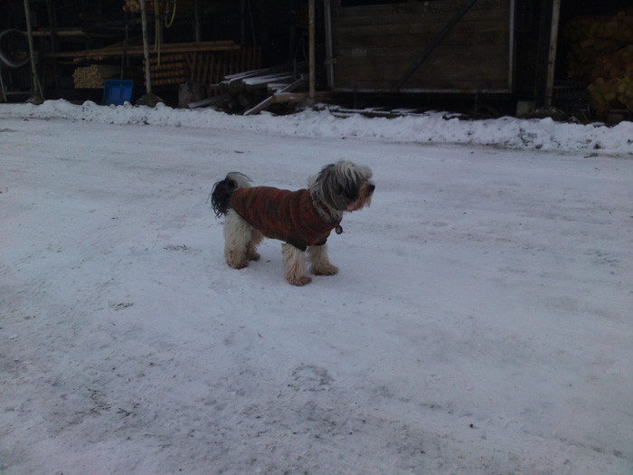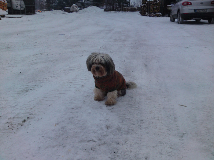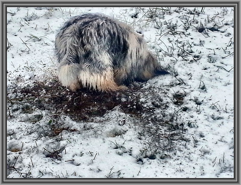 Nee,nee, der fehlt nicht. da mußt du mal deine Größeneinstellung überprüfen :) Auf Grund anhaltenden Kälte bei uns, hat meine Frau für Willy ein neues "Kleidchen" gestrickt. Damit fühlt er sich richtig wohl, da es nicht so eng und steif ist, wie die industrieellen. Aber seht selbst. ![]() ![]()