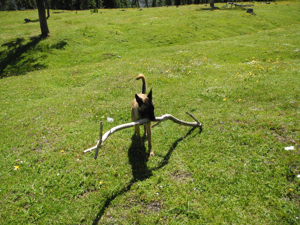Ich weiss nur das sie aus Ungarn kommt und damals von der Retrieverhilfe Oberhausen von der Tötungsstation weg geholt wurde. Sie war dann einige Zeit in einer Pflegefamilie, bis wir sie entdeckten :) Tja nu, sie nimmt ihren Job als meine Leibwächterin sehr ernst und dabei kommen auch Töne raus. Wenn es dann paar wenigen bleibt ist gut, ist ihr Job, ansonsten nervts manchmal schon. Aber jetzt im alter wird sie ruhiger :) Ok.... wir haben die Chillkönigin gefunden! :lol: Ist das genial! :D :D :D Beduin..... Herzlich Willkommen im Kreis der Mudi-Besitzer. :lol: Ungarn, bellfreudig, wachsam, territorial und das typische Aussehen. Da ist nix dran zu rütteln. Sie ist auch sehr intelligent. Hat zB das "rechts" laufen gelernt. Kann sie ja die meiste Zeit ohne Leine laufen lassen und wenn was kommt "Rechts" und sie läuft auf der rechten Seite. Meistens Wenn im Haus Fremde sind, wird klar erst mal laut gegeben, wenn die neuen Nachbarn dann paar mal an unserer Wohnung vorbei sind ist´s gut. Klappt auch immer öfters auf den SP :love: und dann der Blick wenn sie auf dem Heimweg "Fuss" laufen muss "Ähhhh, was soll das, ich kenn doch Weg" aber ist halt doch Schutzhund und je näher wir Wohnung o Womo kommen desto ausgeprägert ist er. Keiner darf zu nahe kommen. War von Montag bis Mittwoch spannend. Dieser Besuch durfte zwar in die Wohnung, aber nicht die Treppe hoch in unsere Schlafzimmer. da hat sie voll abgedreht. Gebissen hat sie aber noch nie July ![]() July 7 Monate jung. July 9 Monate in 2150hm auf dem Ofenpaß im Juli 2015 ![]() und auch etwas höher ![]() und beim Stöckchen holen ![]() Oh, so eine schöne Malinois - Dame. Kein einfacher, aber so toller Hund. Ich beneide euch um eure July Markgräfin Nach Jagd - und Deutschen Schäferhunden ist July die Nr. 5. Kein Hund zuvor hat es mir so einfach gemacht wie diese Hündin. Da seit 2013 im Ruhestand sind wir auch 23:59 Stunden am Tag zusammen. Leine wird nur benötigt beim Einkauf zum anbinden vor dem Laden, liegt ab und macht kein Mucks. Die läuft so eng bei Fuß, sie drückt immer leicht, bin oft sprachlos. Ein leises schnalzen mit der Zunge und schon kommt sie angeschossen, selbst beim Spielen mit anderen Hunden. Mehr als ein Glücksgriff. LG