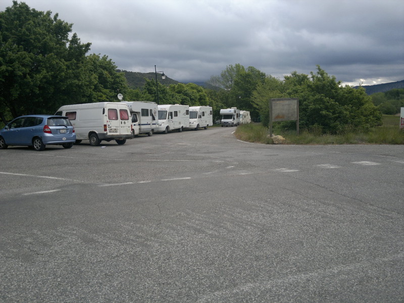 Parkstreifen am südlichen Ortsausgang, 0 €. Ohne VE, WC aber in 100m. Bäcker und kleiner Supermarkt im Ort vorhanden. Der offizielle SP ist mitten im Ort auf einem Parkplatz. Hier steht man aber ruhiger und direkt neben einer großen Wiese. Schattenspendende Bäume, idealer Ausgangpunkt zur Wanderung durch den Canyon. ![]() Blick von der Wiese Richtung Parkplatz. ![]() |