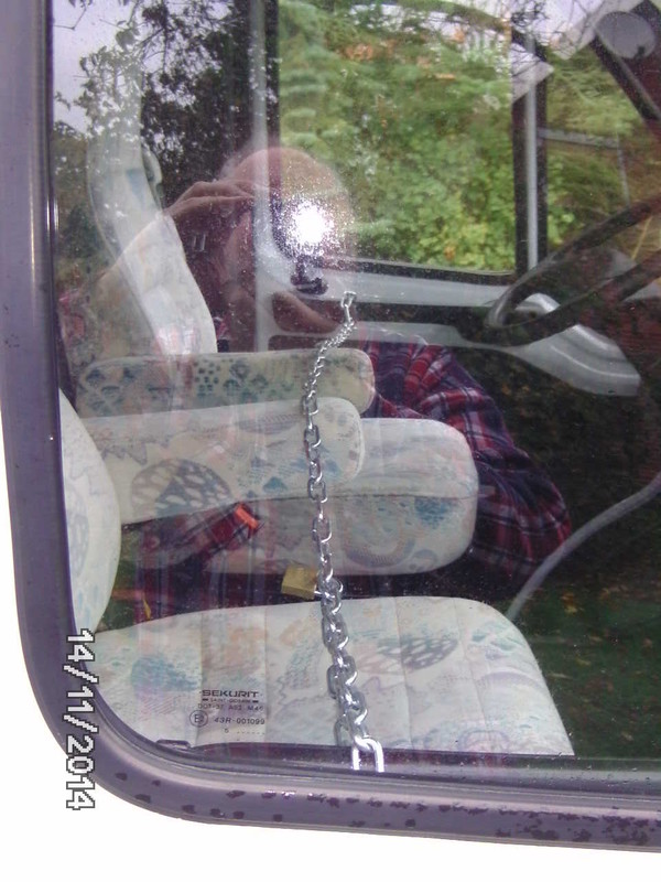 Nee, die Aufbautür bleibt ja frei. Ist aber noch mit einem zusätzlichen Schloß gesichert. Auschlaggebend für den Bau dieser beiden Ketten war ein nächtliches Erlebnis auf einem Autobahnrastplatz in Südschweden. Damals waren wir noch mit einem Alkoven Womo unterwegs und haben es mitbekommen wie sich jemand an unserer Beifahrertür zu schaffen machte. Es ist damals nichts weiter passiert, wir haben Krach gemacht und der Bösewicht war weg. Aber danach wurden die Ketten gefertigt. Wir haben sie jahrelang im Einsatz gehabt und je nach Bauchgefühl angebracht. Campiert man in Cux auf der Platte braucht man sie nicht, aber z.B. beim Parken oder auch Übernachten in Citynähe oder Hafennähe einer fremden Stadt kamen die Ketten immer dran. ... so sieht das bei mir aus, die Kette kommt auch auf Deutschen Parkplätzen zum Einsatz und das Handschuhfach ist beim stehen grundsätzlich leer und auf. ![]()