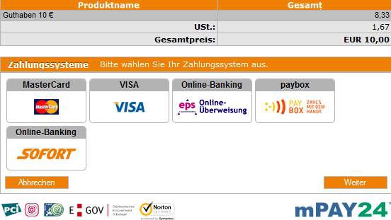 Bei dem von Dir angegebenen Link sieht es so aus, als ob man dort auch die drei.at-Aufladebons erwerben kann - vielen Dank für den alternativen Tipp! Bezahlt wird hier aber scheinbar auch mit den oben angebotenen Optionen.