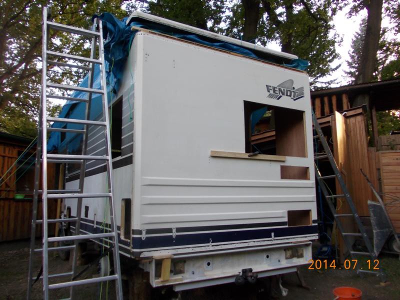 Die Sache mit der Matte im Winkel zum Alkoven würde mich interessieren. Zwar habe ich die Stelle nachgedichtet, stehe dahingehend aber weiteren Anregungen sehr aufgeschlossen gegenüber. Bei uns auf dem Hof stelle ich das Auto immer vorne auf Keile. Durch die verstärkten Vorderachsfedern läuft das Wasser dann nach hinten ab.