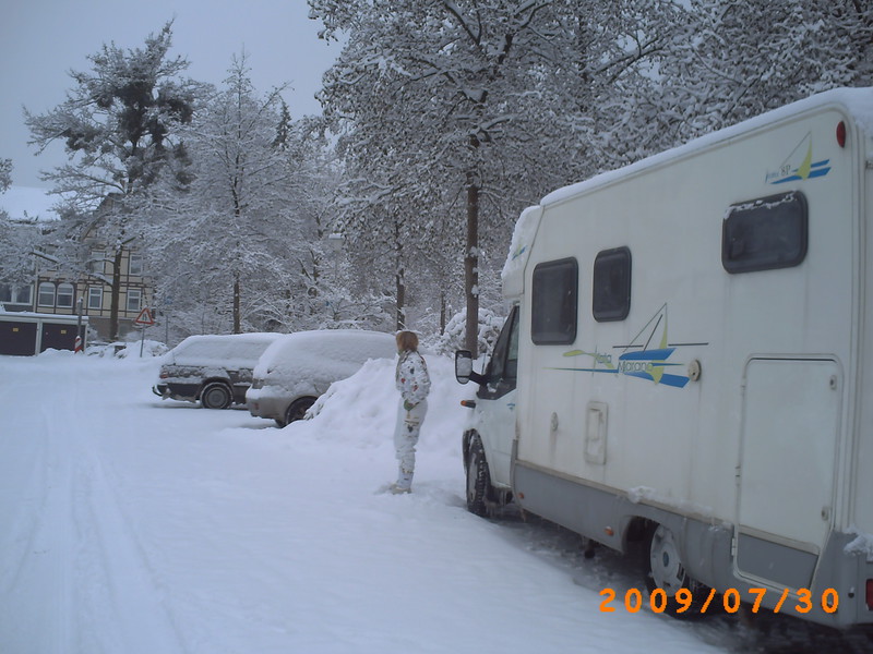 Wie lange warts Du denn schon im Winter unteregs? Seit vier Jahren. Meistens an Thermen. Bis jetzt haben wir uns auch bei Minus Grade wohl gefühlt. Warm bekommt man das WoMo auch im Winter ohne Abdeckung. Allerdings hat man Nachts dann an den Frontscheiben eine Tropfenbildung durch Kondenswasser, was schön an der Scheibe runterläuft und alles maß macht. Zusätzlich ist es ein durchaus angenehmeres Gefühl wenn man auf den gedrehten Frontsitzen sitzt und es nicht so kalt von vorne reinkommt. Ich habe vorne sogar seitlich Doppelverglasung und eine zusätzliche Front-Gasheizung. Trotzdem verzichte ich im Winter nicht auf die Abdeckung. Ist in einer Minute angebracht und bringt so viel. Auf dem Foto am Anfang kann man sehen, das man mit einem Reisverschluss die Front und Seiten ein wenig öffnen kann. Wenn man dies macht, kommt da nicht trotz allem das Kondensat an das Glas? Natürlich sollte vorher gelüftet werden. Ist schon klar. Natürlich kommt dann an den Stellen Kondensat. Bei mir kam auch bei mit Gummisaugern montierten Innenisolationen Kondenswasser hinter die Abdeckungen. Deshalb bin ich auch Verfechter von Aussenabdeckungen. Sehe ich das richtig, um Schwitzwasser zu vermeiden sollte man eine Aussendämmung verwenden. Um die einfallende Kälte im Fahrerraum aufzuhalten sollte eine Innendämmung gewählt werden. Dafür bin ich zu bequem. Wir stehen maximal eine Woche an einem Platz. Dann erwacht das Fernweh und es geht weiter. Dann das nasse Zeug ins Womo ,noch mehr Kondensat. Dann doch lieber eine Flasche Gas mehr verbraucht und kräftig lüften. Wir reden hier von einer Thermoabdeckung-Winter. Nicht von einer Scheibeninnefolie fürs Fahrerhaus für 9,95 € mit Saugnäpfen. Bei einer Thermoabdeckung Innen entsteht Kondensat. Aber wen störts. Wenn man die Fensterrahmenabdeckungen öffnet, um Tageslicht zu genießen (wenns geht, mit Sonne), dann werden die Scheiben schnell wieder klar. Und so bei -18 Grad nachts etwa in Grainau hast Du ne Eisschicht auf der Fensterscheibe. Das ist Isolation pur. Hier mal 2 Bilder morgens bei ca. -10 Grad Celsius auf dem SP Goslar. Da war nix mit Strom, weil wir die 10 Meter weiter garnicht gekommen wären (siehe Bild 2). Es ist halt Beides entscheidend, wenn man, wie dort in 2009 keinen einzigen Platz mit Steckdose findet. Gas und Stromvorrat (Letzteresfür die Heizungsfunktion)! ![]() ![]() Und die Nacht vorher hatten wir am Brocken auf dem Parkplatz des Bürgermeisters übernachtet. Da wars noch kälter. Zum CP kamen wir nicht mal rein trotz Schneeketten, mal abgesehen davon, dass nix mehr frei war. Das war ein richtiges Abenteuer, welches ich hier schon einmal beschrieben habe, um überhaupt dort hin zu kommen. Auf unseren Cafe-Crema und den "Tatort" mussten wir trotzdem nicht verzichten. Für die Bodenisolation im Fahrerhaus habe ich übrigens zurechtgeschneiderten Filz verwendet unter dem Fahrerhausteppich. Der ist seit 2008 nie entfernt worden. Er saugt Feuchtigkeit auf und dämmt die Fahrgeräusche. Felix52 :) (merkwürdiges Wetter .. am 30.07.2009 in Goslar .. :gruebel: ) :lol: :lol: tschulligung :kuller: ich bin jetzt immer noch hin und her gerissen. Also doch nur Innen? und dann ein wenig Kondensat in Kauf nehmen? wie funktioniert das mit der Anbringung im WoMo? wo befestige ich das an meinem Alkoven-hubbett? Wir möchten auf die Außenabdeckung nicht verzichten, dadurch hatten wir in den letzten Jahren kein Kondensat innen. Mich interessiert die Innenabdeckung aus wärmetechnischen Gründen, aber irgendwelche Verschraubungen möchte ich nicht anbringen, Saugnäpfe geht nicht, weil da noch die Faltverdunklung ist. Außerdem finde ich es toll, dass der Fußraum mit einbezogen wird, den überbrücken wir im Moment mit einer Fleecedecke, sieht aber nicht so schön aus. Martina, wir können unser Alkovenbett auch "hochklappen", die Innenabdeckung käme damit aber gar nicht in Berührung, da sie ja direkt vor den Fenstern angebracht wird. Oder habt ihr keine drehbaren Sitze und benutzt somit das Fahrerhaus nicht als "Wohnraum"? Dann käme doch ein guter Thermovorhang in Frage und die Fenster könnten von innen mit einer ganz normalen Thermoabdeckung isoliert werden. doch ich habe auch eine Halbdinette und sitze total gerne auf dem Beifahrersitz leider ist es sogar schon im Herbst an der Stelle ar...kalt ich bin ja bisher noch nicht im Winter gefahren. Aber vielleicht schaffe ich in diesem Jahr die eine oder andere kurze Tour Wir bekommen es wirklich schön warm vorne. Haben die Außenabdeckung, die Faltverdunklung und, wie gesagt, noch diese Fleecedecken, die wir zum Isolieren nehmen. Nicht schön, aber warm. Deshalb möchte ich eine etwas schönere Lösung. Wenn ich aber bedenke, wieviel Platz dieses Innenteilchen wegnimmt, gerade im Winter, wo doch die Garage, die bei uns nicht so groß ist, schon voll ist mit Ski, Skischuhen, Langlaufklamotten etc., müssen wir überlegen, ob das in Frage kommt. Die Isomatten liegen in der Hängematte :) ![]() ![]() Ihr seid alle so schrecklich aufgeräumt :oops: |