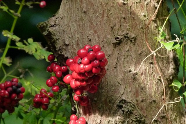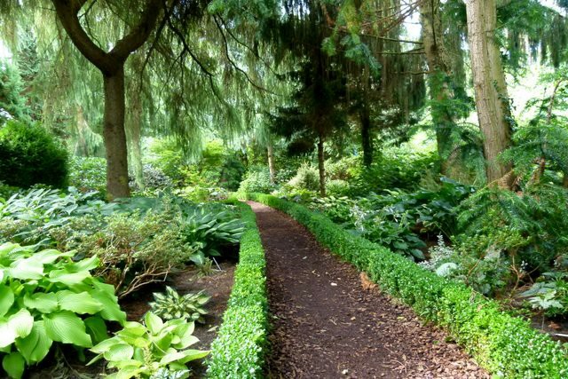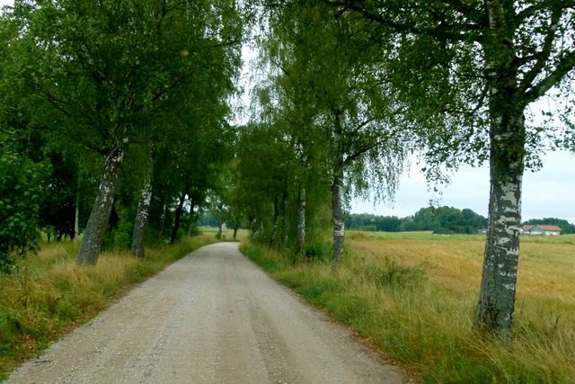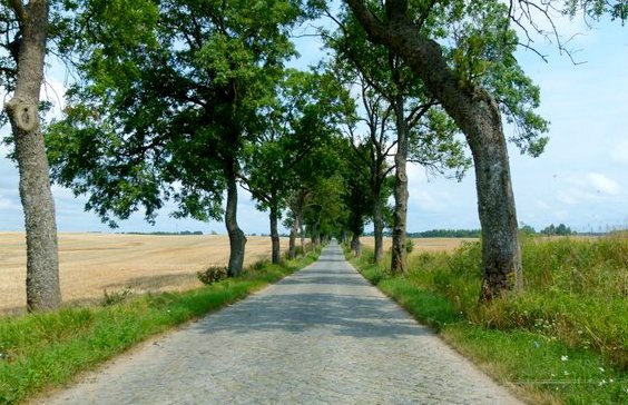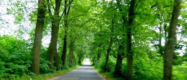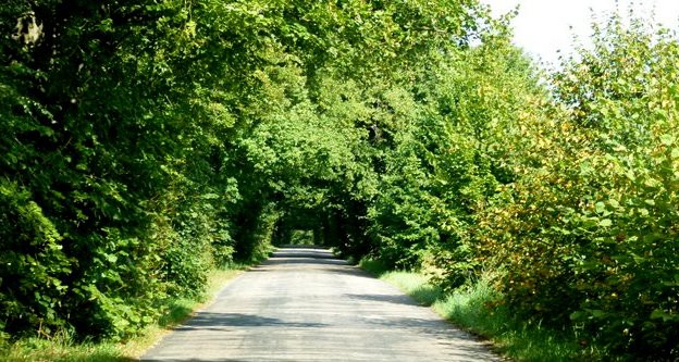 Knorrige Eichen, Buchen, Birken usw. säumen die Straßenränder.