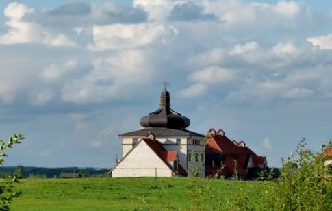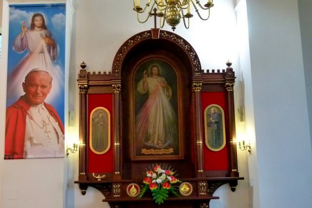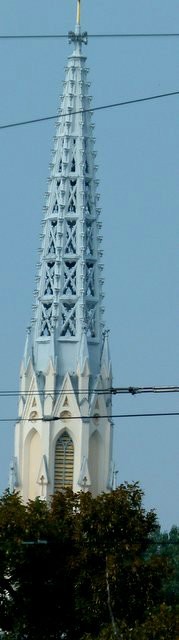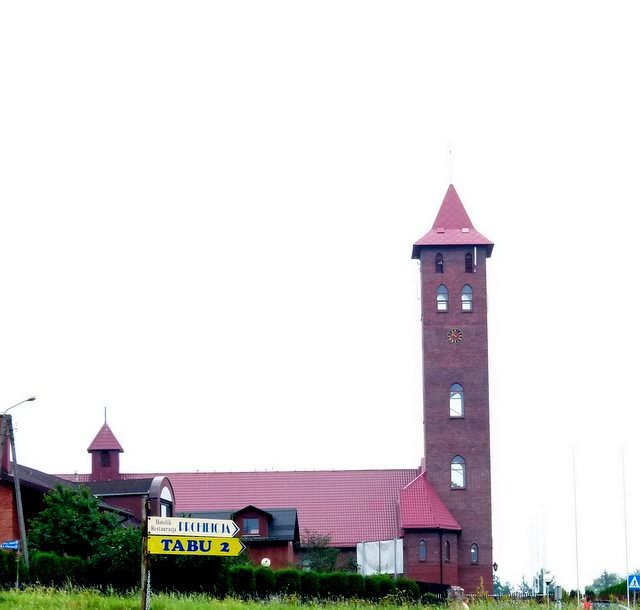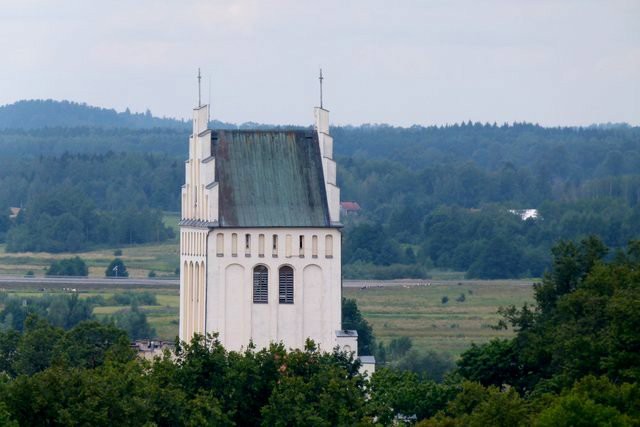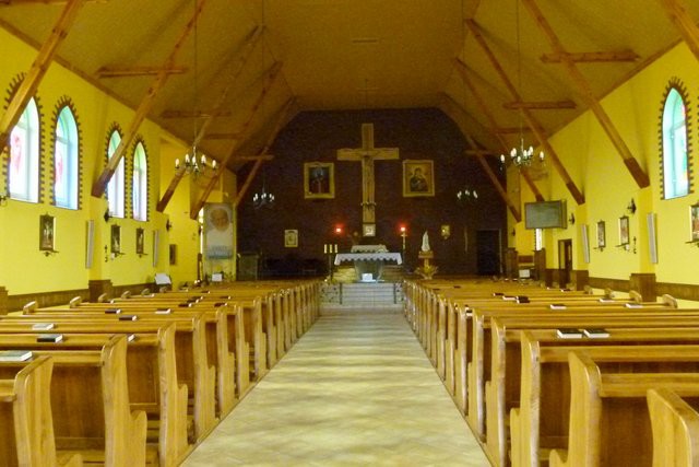 Wenn wir schon mal bei den Kirchen sind... Die katholische Gemeinde errichtete eine neue Kirche, hoch über dem Ort auf einem Hügel, weithin sichtbar.