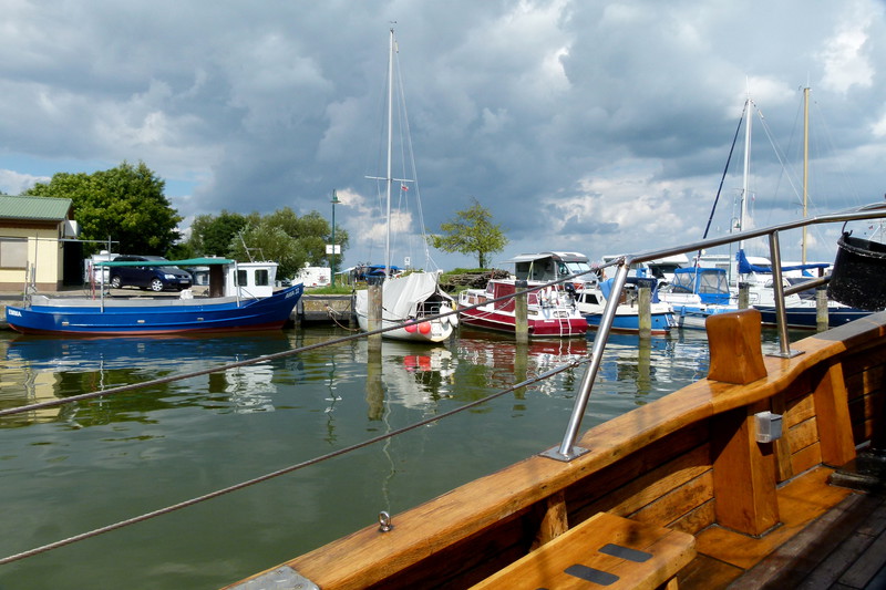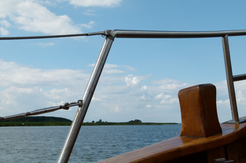 Am Nachmittag nutze ich die Gelegenheit einer kleinen Haffrundfahrt. Es ist bewölkt bis klar, sehr windig und kalt auf dem Wasser. Bin froh, meine Windjacke eingesteckt zu haben.