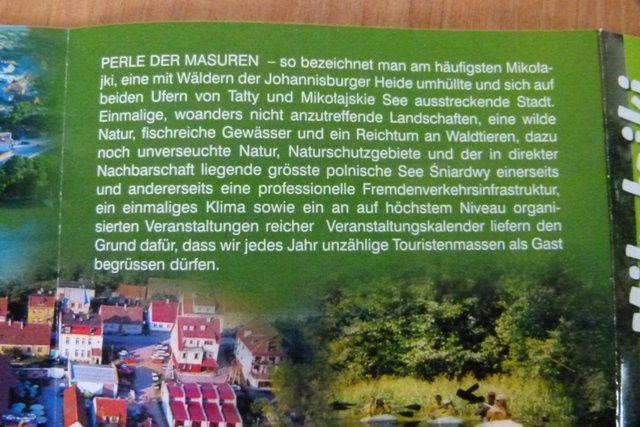 Darf ich mit erlauben, auf eine Besonderheit bei Mikolaijki aufmerksam machen ? Ca. 20km hiervon entfernt liegt Krutyn/Krutinnen, ein Wassersportparadies. Auch wer sonst nichts damit am Hut hat, sollte dort ein Paddelboot mieten und die Strecke nach Ukta fahren, offenbar der schönste Abschnitt auf diesem Flüsschen. Denn anfangs fühlt man sich wie auf einem Bach im Urwald, und man kann mit leichter Strömung die ca. 13km leicht in 4 Std. schaffen. Für umgerechnet 10.- bis 12.- € wird man nach der Fahrt auch noch zurückgebracht.