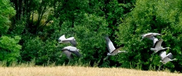 Störche hocken mit ihren Jungtieren in den Nestern, es wird langsm eng und der Abflug in den Süden steht bevor.