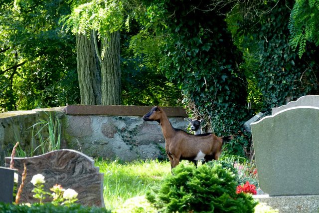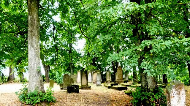 Fährt man die Straße an der katholischen Kirche weiter und hält sich etwas rechts, findet man einen alten jüdischen Friedhof.