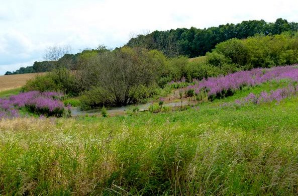 Wild wachsenede Blumen und Stauden auf freiem Gelände, von dem es im und am Ortsrand große Flächen gibt..