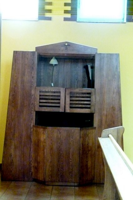 Ein moderner Beischtstuhl aus wunderschönem massiven Holz, eine handwerkliche Meisterleistung.