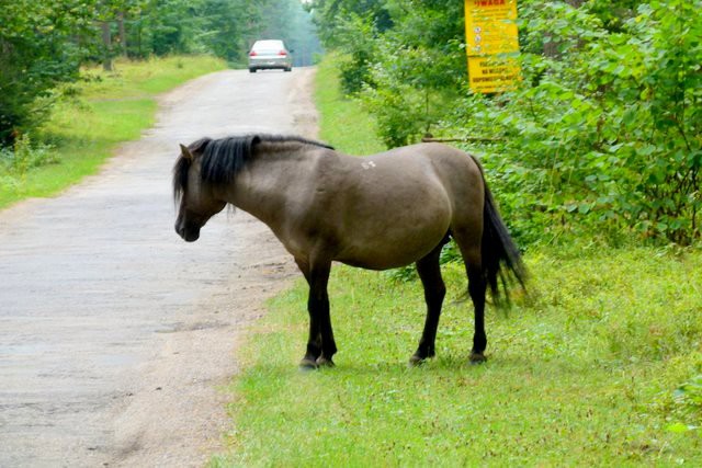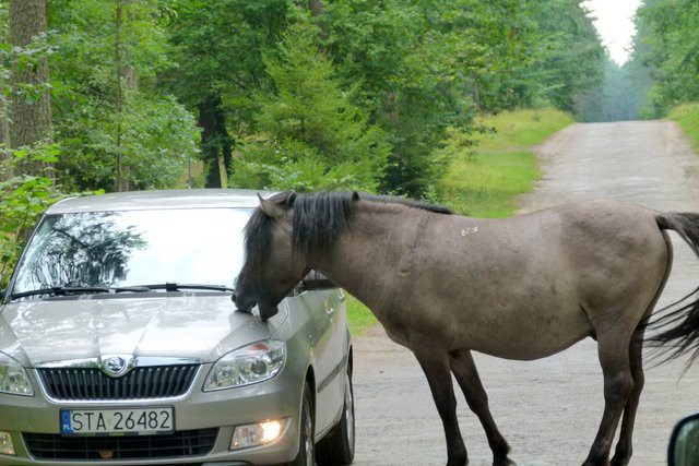 Die Pferde lassen sich nicht aus der Ruhe bringen, aufheulende Motoren, Hupen oder ähnliches gebaren mögen sie nicht. Mit gesenkten Kopf gehen sie ziestrebig auf den Störenfried zu und attakieren ihn gegebenfalls.