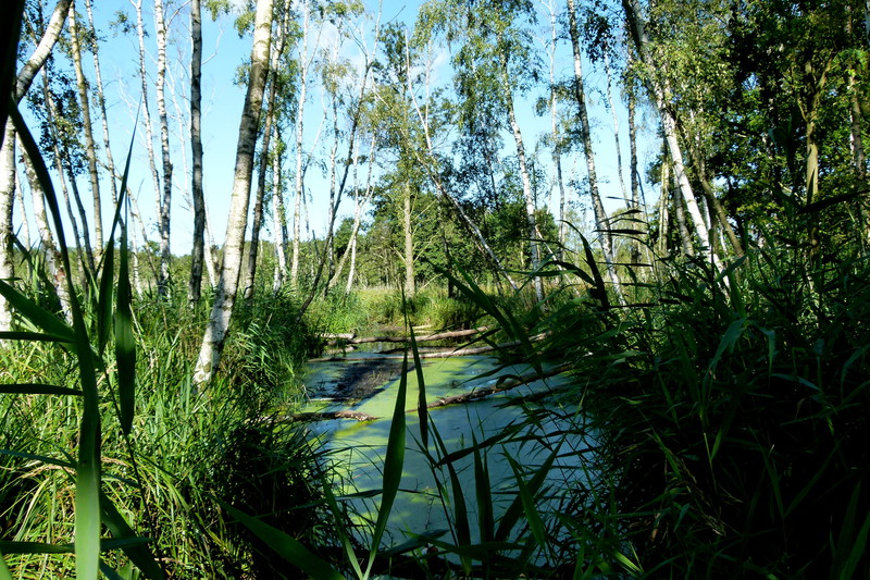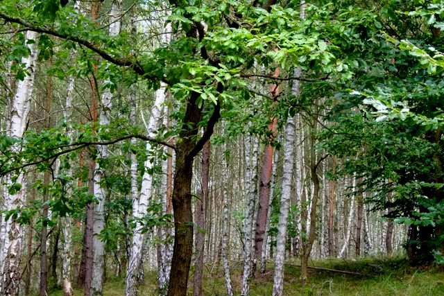 Ich radle durch Mischwälder oder wie hier ein kleiner Birkenwald. Hin und wieder Sandstrecken, da ist schieben angesagt.