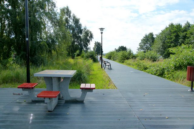 Der Abstecher in den Ort heute nur kurz, weil ich zurück radeln möchte. Auf einem geteerten neuen Radweg rolle ist aus dem Ort heraus und finde die Einfahrt in den Radwanderweg um den See.