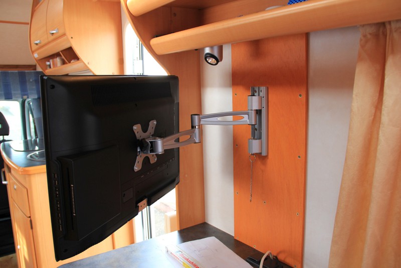 ich beabsichtige bei meinem Globetrotter 5880 BJ 1998 einen Flachbildschirm 22" an der leeren Aussenwand oberhalb der Eingangstüre zwischen Alkoven und Küchenoberschrank zu montieren. Ich habe aber kein all zu grosses Vertrauen in die Stabilität der dünnen Sperrholzverkleidung.