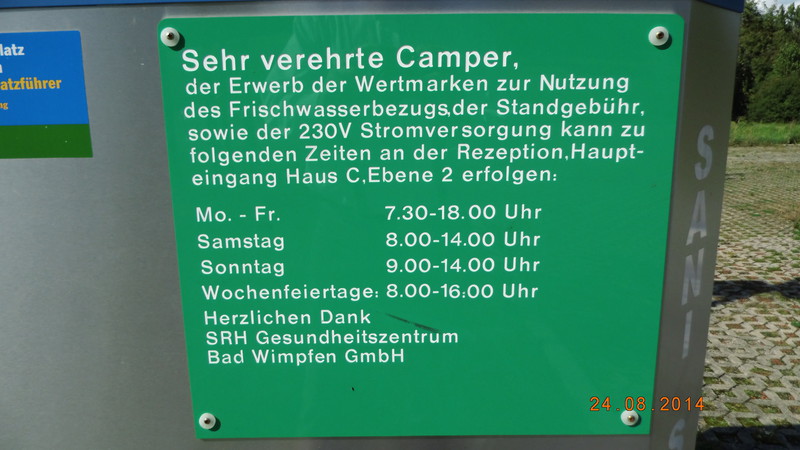 Wir waren im August 2014 auf diesem SP und können diesen in fast jeder Hinsicht weiter empfehlen. ![]() Fast, weil die Regelung mit den Chips bei Anreise außerhalb der Öffnungszeiten doch für ein wenig Verärgerung sorgt. Dann nämlich kann man weder Entsorgen noch Strom entnehmen. ![]() Der SP ist sehr ruhig am hinteren Ende eines PKW Parkplatzes gelegen. Das Zentrum ist fußläufig erreichbar und echt sehenswert. Auch die Aussicht von der Stadtmauer oder einem der Türme auf den Neckar ist toll. Viele sehr gepflegte Fachwerkhäuser und ausreichend Gastronomie. ![]() ![]() ![]() Ihr werdet den Besuch nicht bereuen. Vielleicht sollte man sich aber vorher schlau machen, ob nicht Märkte oder Veranstaltungen abgehalten werden, dann könnte es eng werden. Ewald Hallo ,wir waren vor 14 Tagen dort und ich will ergänzen,bei der Anmeldung im Gesundheitszentrum unbedingt die Stellplatznummer parat haben.Ich hatte diese nicht und musste zurück zum Platz,dort sind die Zahlen auf dem Boden kaum noch zu erkennen und wurden so von mir und auch nachfolgend anreisenden Womo Fahren nicht bemerkt. Auf dem Hinweisschild am Platzeingang steht eindeutig,das pro Nacht 8 Euro fällig sind,so weit so gut, bei der Anmeldung sind aber 10,30 Euro zu bezahlen,da ja Kurtaxe dazu kommt,einen Hinweis dazu fänd ich schon nicht schlecht. Sonst ist der Platz und die Stadt zu empfehlen. Gruß Andreas mittlerweile 12€ + kt. allesbleibtgut hartmut |