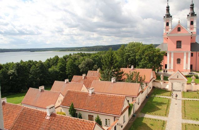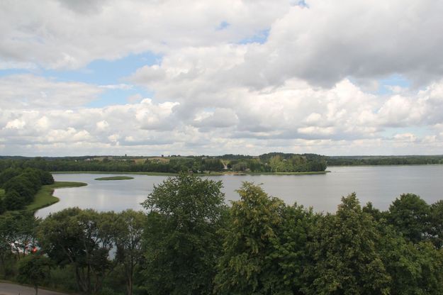Am nördlichen Ufer des Wigry-Sees gibt es den Campingplatz in Stare Folwark, der ziemlich klein und immer voll ist. Er hat zwar einen schönen Bdestrand und ist von Suwalki her gut zu erreichen, aber die Sanitär"ausstattung" ist m.E. eine Zumutung. Etwas umständlicher zu erreichen, aber weit besser empfinden wir diesen Agroturystyka. Er liegt am Fuß des - sehr sehenswerten - Kamadulenserklosters und hat (nur) einen Wiesenstrand. Das Kloster mit seinen ehemaligen Mönchszellenhäuschen, die jetzt touristisch genutzt werden, hat eine sehr schöne Lage über dem See: ![]() ![]() Blick vom Uhrenturm des Klosters |